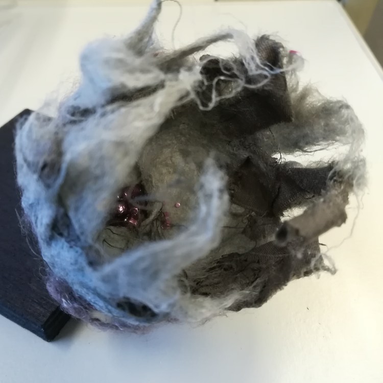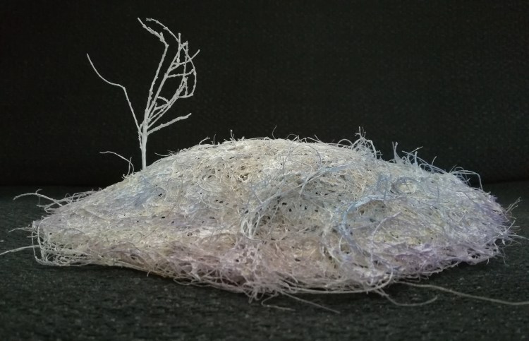 Schetsen 3D Schets in 3D – landschap van rust 2020 Heide, heidemat, acrylverf Onderzoek naar materiaal en vorm – Seeds 2019 Gerecycled textiel en natuurlijke verfstoffen ← ↑